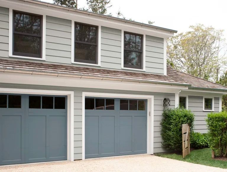 Colores oscuros en busca de un look contemporáneo. Créditos de la imagen: Benjamin Moore. - Combinar el color del garaje con el acabado exterior de la casa. Se trata de elegir un esquema de colores para toda la casa. Lo que se busca es que todo tenga una sensación de cohesión. Si el garaje si está separado de la casa una opción es para el garaje elegir unos tonos más claros o más oscuros que el del exterior de la casa.