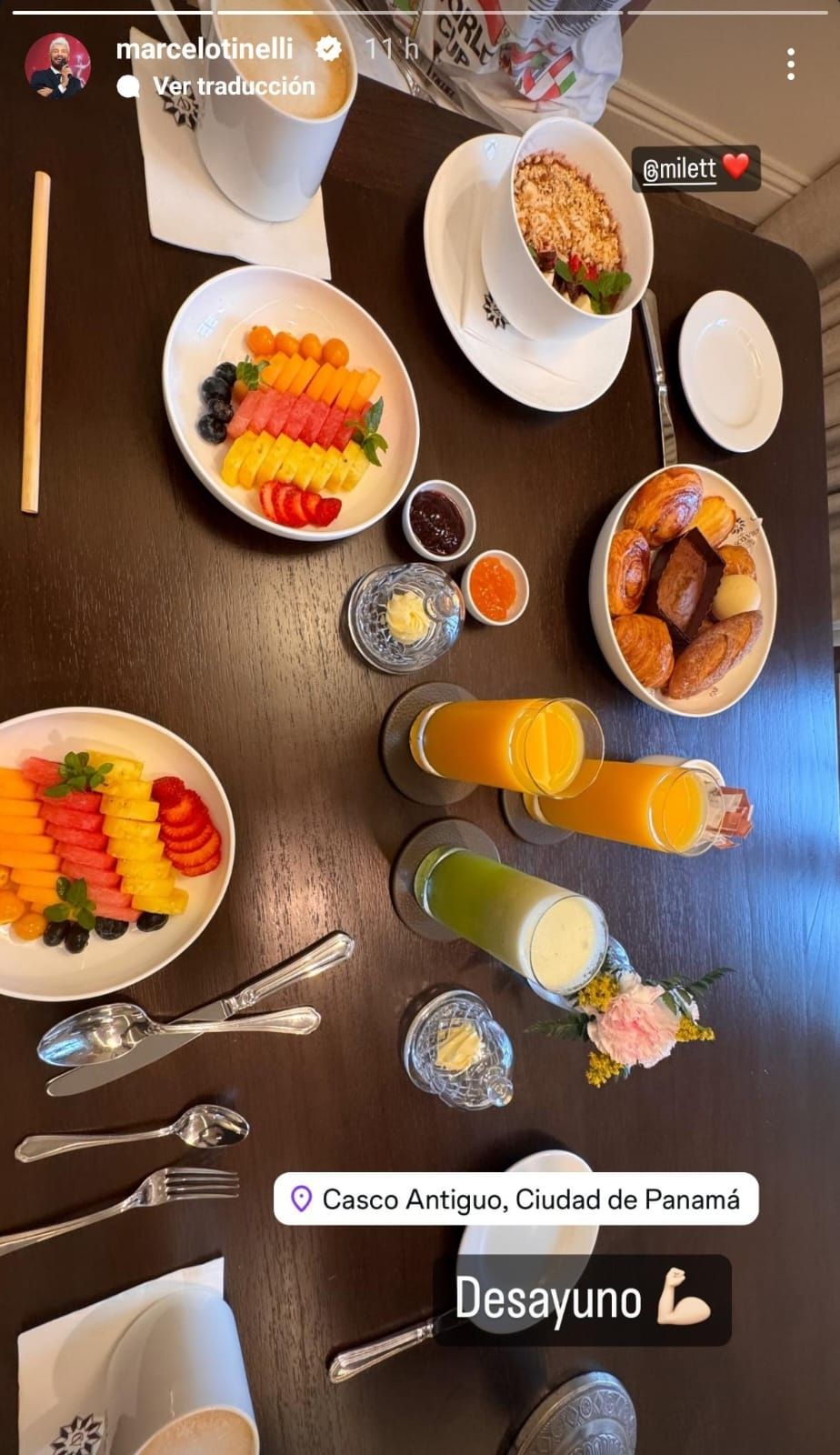 Marcelo Tinelli compartió en un reciente posteo en sus redes sociales una imagen del fabuloso desayuno que degustó junto a su novia. Los tórtolos se encontraban en un país de América del Centro, más precisamente en Panamá.