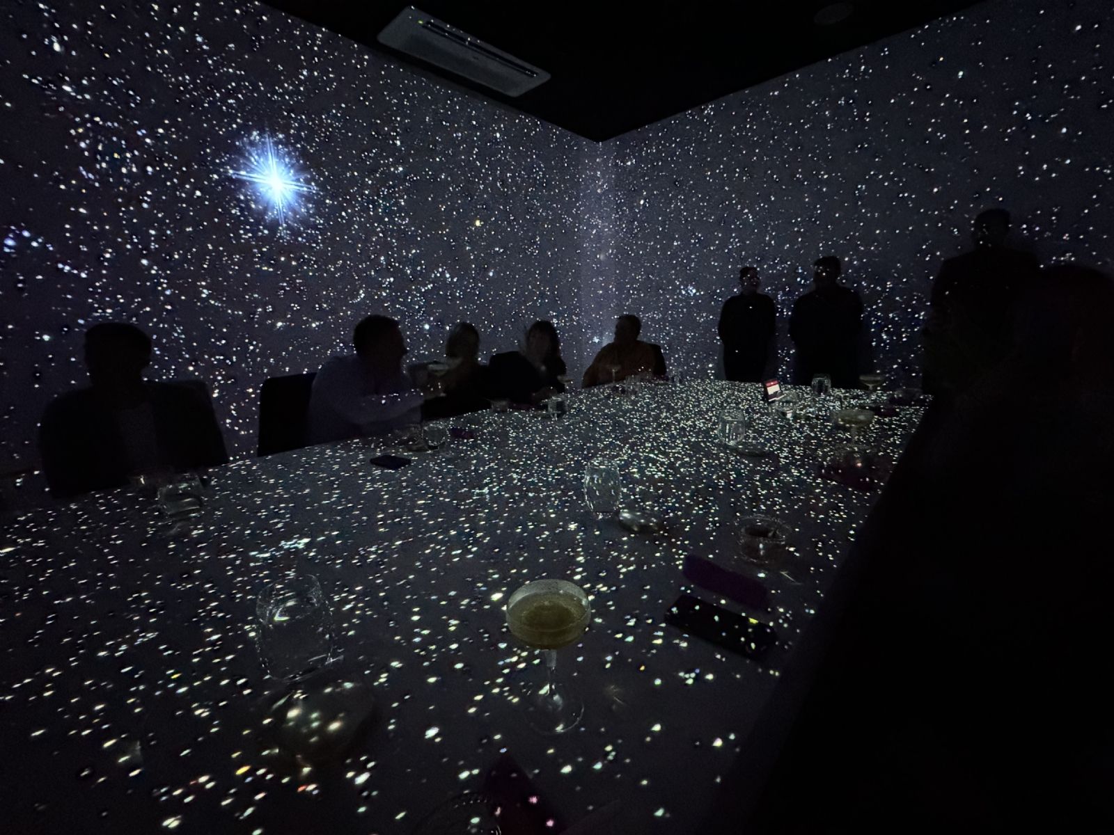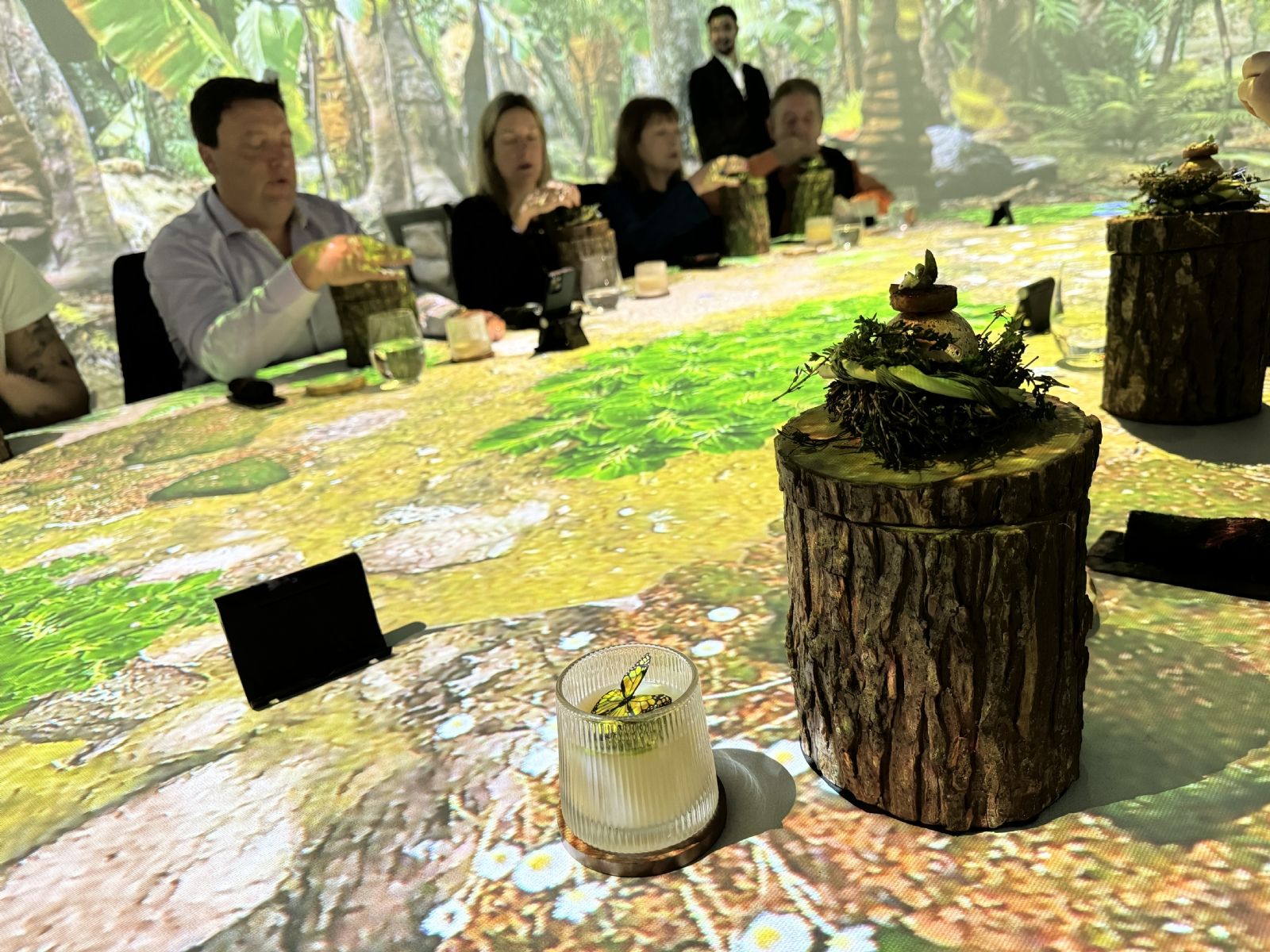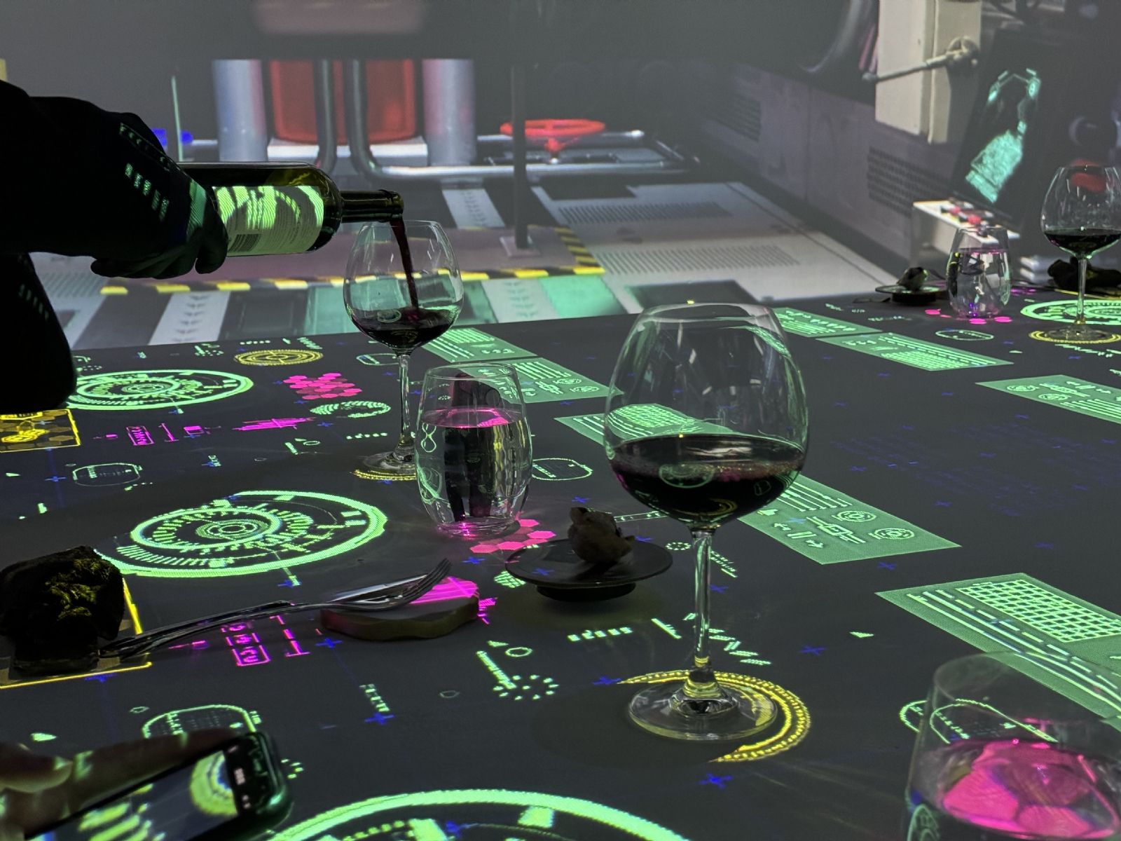 Al ingresar al salón, tras una breve charla en donde te invitan al "futuro Buenos Aires", en una pantalla gigante, utilizada como mesa, se pueden observar el nombre de los 16 comensales que compartirán la experiencia. Con un servicio excelente en cada momento te vas sorprendiendo por diferentes accesorios y detalles que se presentan a lo largo de la cena que dura tres horas.
