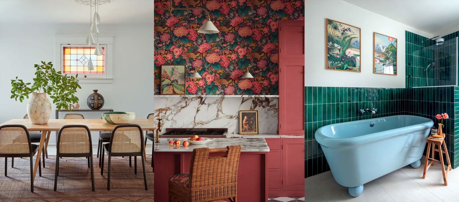 Desde baños coloridos hasta sillas con faldones, lo que sigue son las tendencias vintage que están volviendo este año.