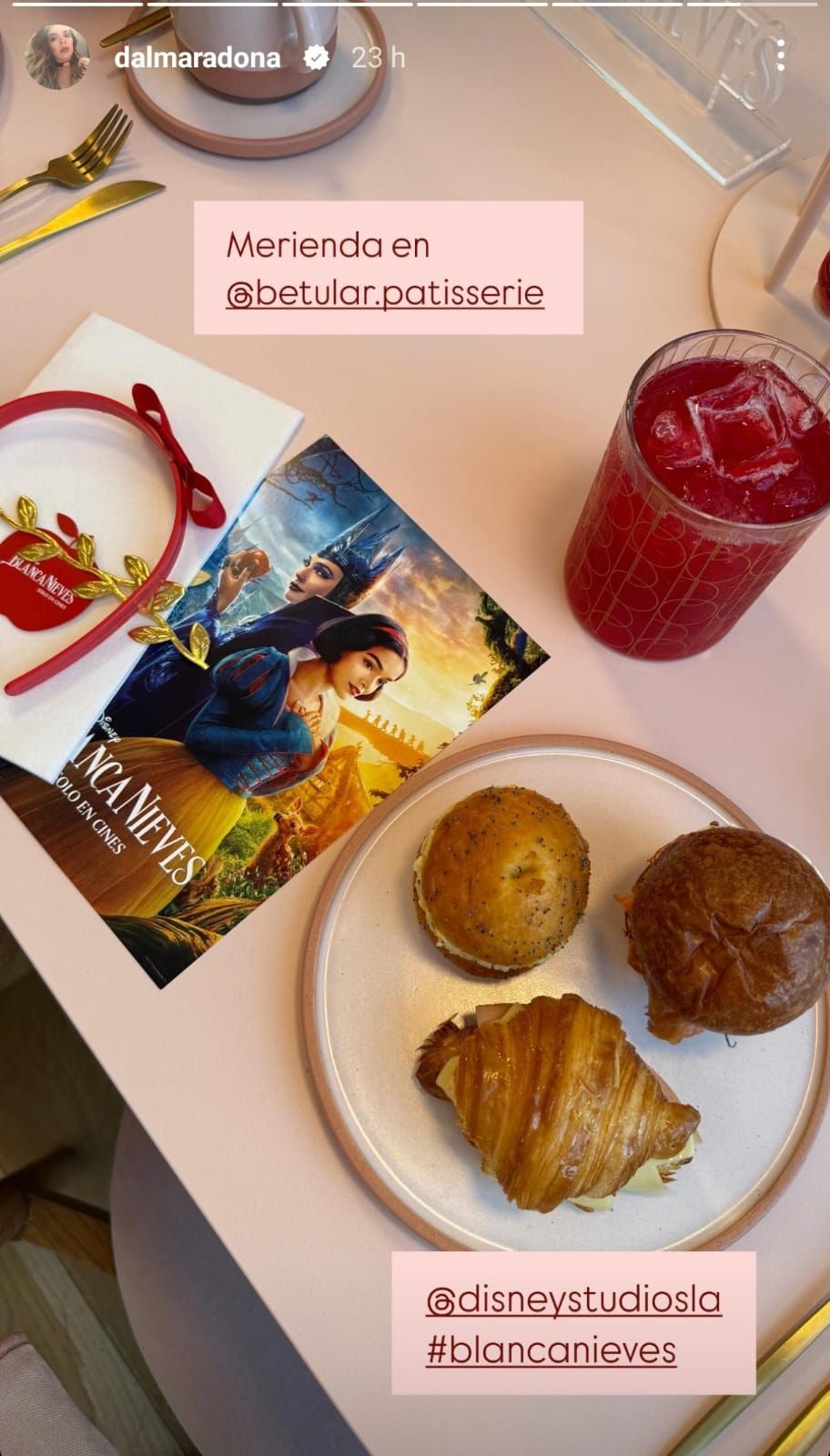 La hija del mítico futbolista Diego Armando Maradona fue invitada por Disney a un evento dedicado al estreno de la nueva película de Blancanieves y allí fue donde pudo degustar algunos de los productos preparados en la tienda del famoso chef, jurado de realities como Bake Off Argentina y MasterChef Celebrity.