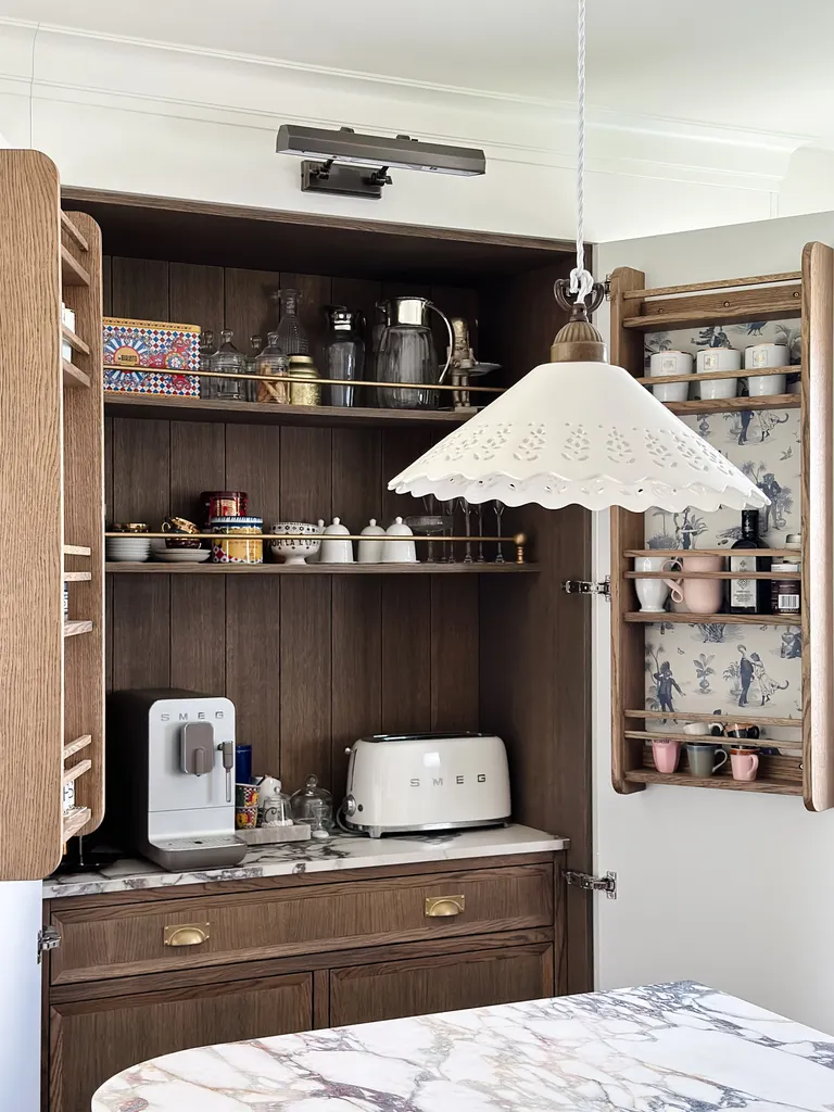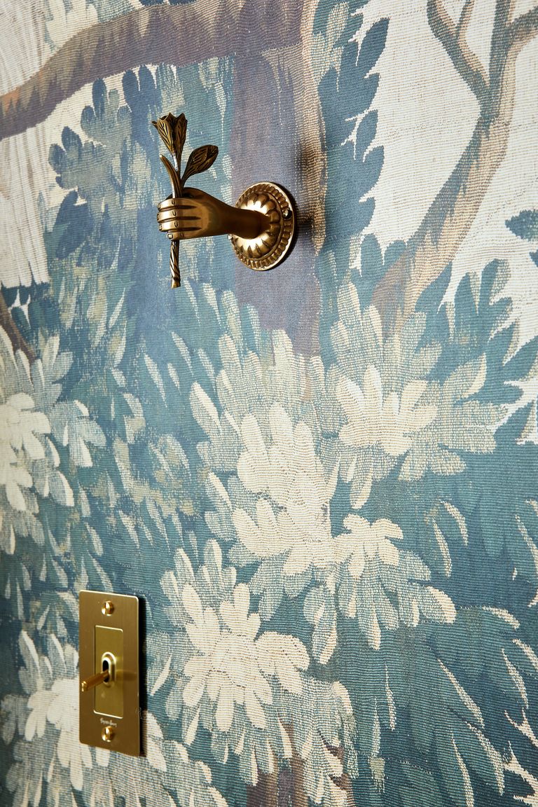 Placas de interruptor (izq), bordes de piedra para molduras (centro) y herrajes a medida (der). Créditos: Aaron Dougherty / Diseño: Urbanology; Matti Gresham / Diseño: Urbanology y Dustin Halleck / Diseño: Sarah Montgomery. - Interior de las puertas con armarios. Algunos de los mejores detalles de diseño ofrecen un toque inesperado, y una de las mejores maneras de lograrlo es con un buen empapelado ya que éste dentro de un armario sirve para añadir profundidad y carácter a una pieza funcional, o para darle una nueva vida a una cómoda o alacena, y de paso añadir más estampados al hogar.
