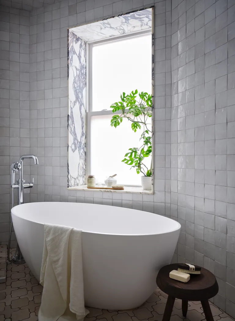 Bordes de piedra para molduras. En este plan de mejorar una vivienda a partir de los pequeños detalles, los bordes recortados alrededor de los nichos de la ducha son uno de ellos y la solución que se propone aquí es la de una moldura de piedra decorativa o un azulejo redondeado para darle a su espacio un aspecto refinado. La piedra es un material duradero y atemporal que aporta belleza y funcionalidad.