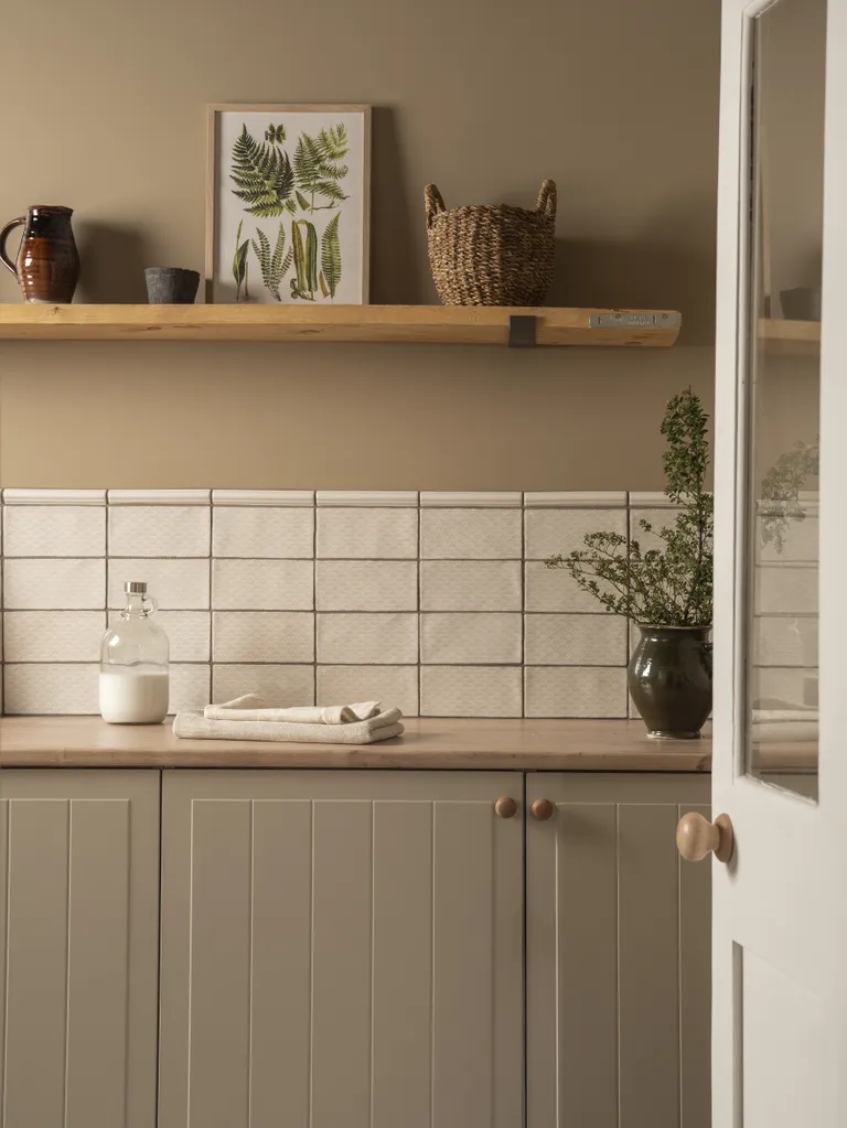 Molduras pintadas (izq) y lechada coloreada (der). Créditos: Farrow & Ball y Clay & Rock. - Lechada coloreada. Se trata de una masa de cal o yeso, o de yeso con tierra, o bien de cal con arena, que sirve para blanquear paredes y para unir piedras o hiladas de ladrillo. En este caso no es de color blanco porque no aporta mucho a los azulejos desde el punto de vista estético.