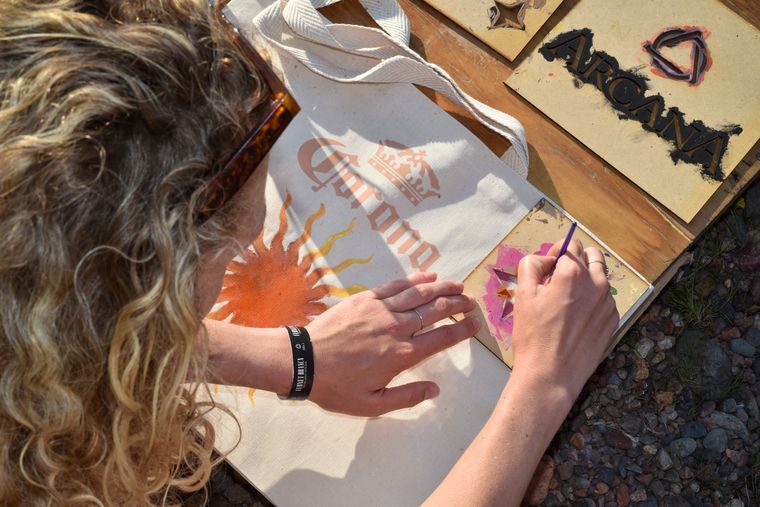 Antes de que comenzaran los DJ sets, el clima ya marcaba el espíritu del evento: personas pintando tote bags, grupos de amigos relajados en reposeras frente al paisaje y muchas manos sosteniendo una Corona bien fría con lima. El stand de Corona Beach funcionó como lugar de pausa y conexión, alineado con la identidad fresca y descontracturada de la marca.