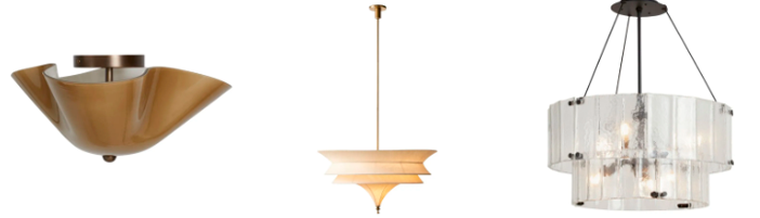 Lámpara empotrada, lámpara araña y lámpara araña de dos niveles.