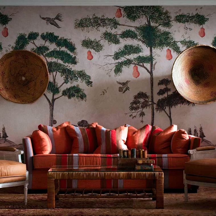 Gracias a los empapelados hechos con diseños a gran escala la pared de un living, comedor o dormitorio adquiere una cualidad artística y a la habitación una dimensión narrativa que la pintura por sí sola.