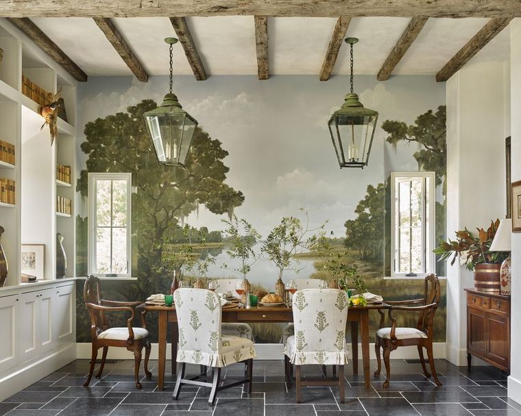Éste es un empapelado vintage que muestra una escena tranquila al aire libre con árboles con pájaros. Precio: 430 dólares . Foto: wayfair.com.