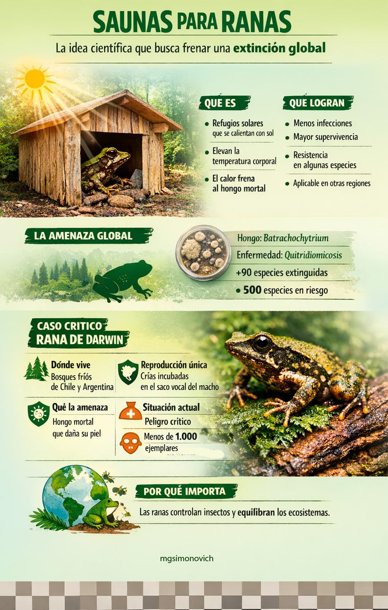 Frente a una de las mayores crisis de biodiversidad silenciosa causada por un hongo, un biólogo propone soluciones que combinan ingenio, ciencia y respeto por la naturaleza. Desde pequeños saunas hasta vacunas experimentales, su trabajo busca frenar la extinción masiva de ranas y otros anfibios.