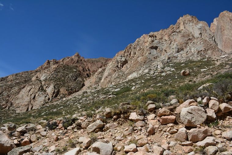 Pero el Cajón de Arenales no solo convoca a quienes desafían la verticalidad. También es un paraíso para los aficionados al trekking. Uno de los recorridos más elegidos es el que conduce a la Laguna de los Arenales, oculta tras la morrena del valle y rodeada por un paisaje de alta montaña de belleza sobrecogedora.