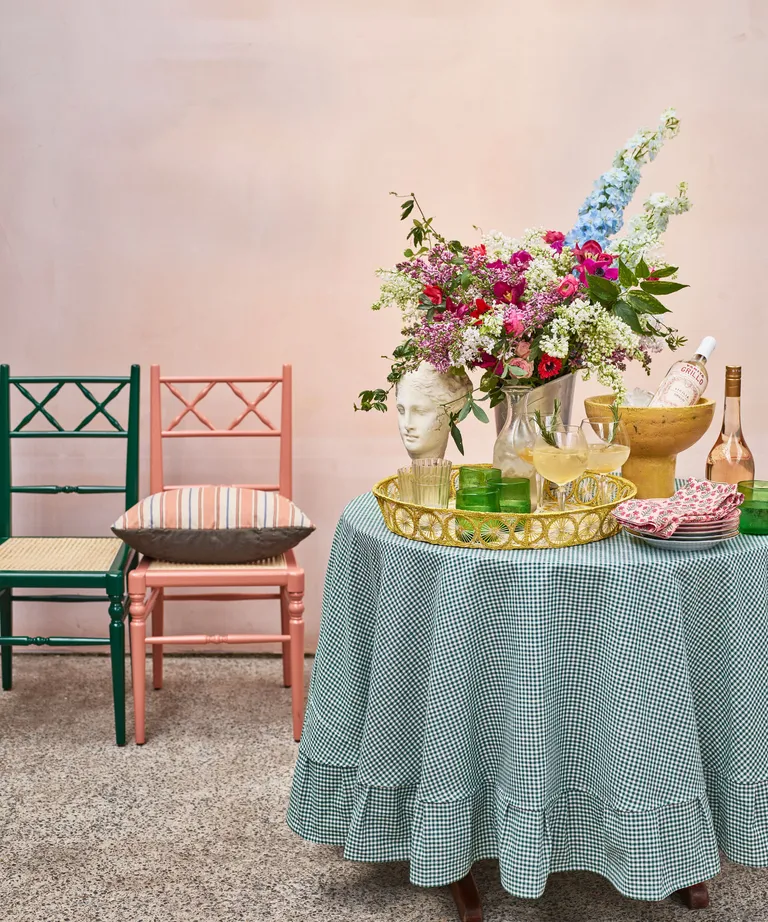 3. Centrarse en los colores en manteles, caminos de mesa, vajillas, platos base elegantes, cubiertos, cristalería, fuentes y, por supuesto, el centro de mesa, entre otros elementos. Créditos: Emma Lee/Future.