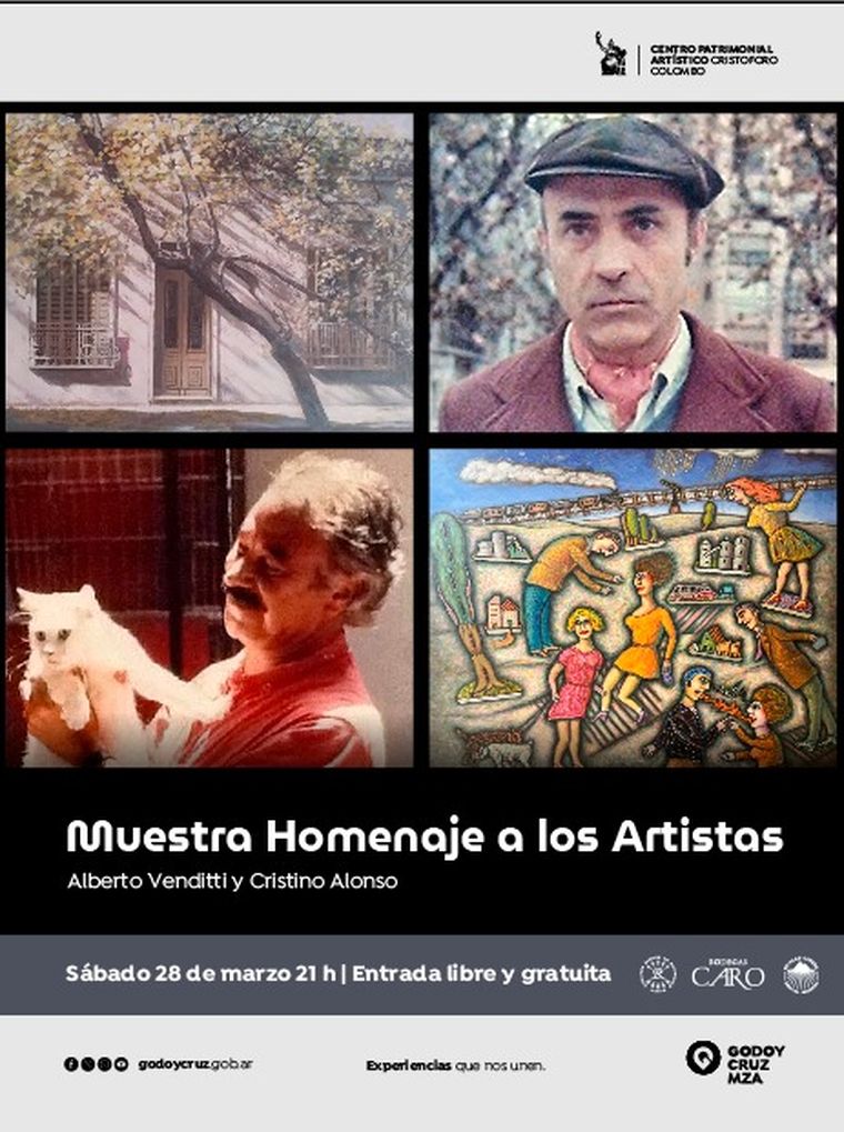El sábado 28, a las 21 horas, el Centro Patrimonial Cristoforo Colombo, ubicado en Tomba 246 de Godoy Cruz, será escenario de una inauguración de especial densidad simbólica y artística. La muestra conjunta dedicada a Cristino Alonso y Alberto Venditti propone un recorrido profundo por la obra póstuma de dos creadores fundamentales para comprender buena parte del desarrollo del arte visual en Mendoza durante el siglo XX.