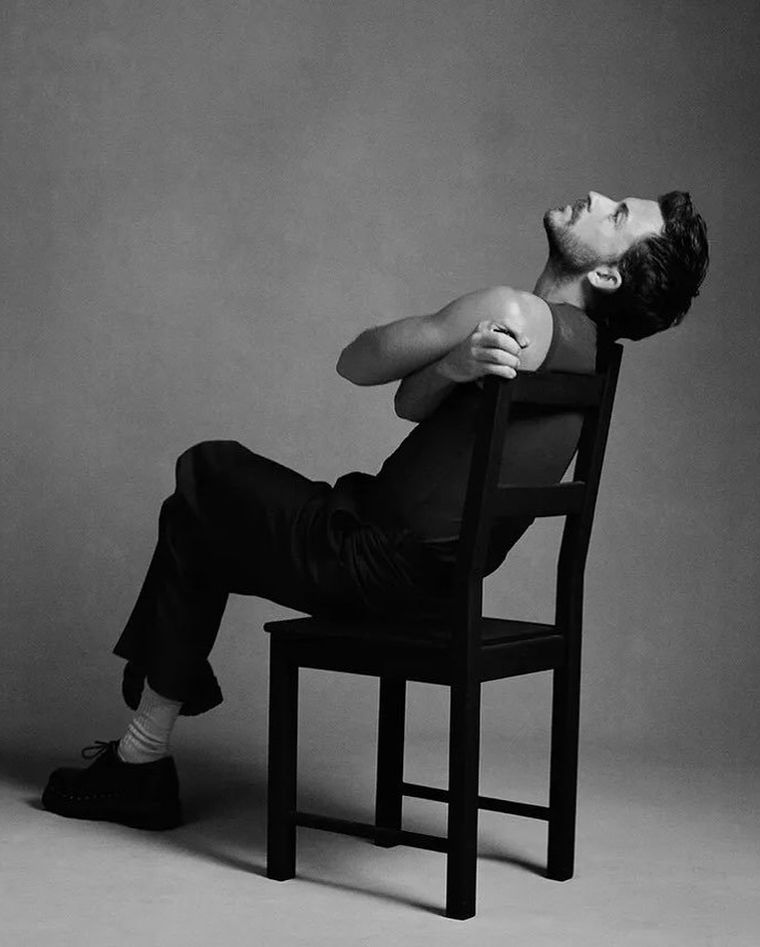 En otra de las fotografías, Bailey aparece en blanco y negro, sentado de manera casual sobre una silla, con un look más minimalista: musculosa, pantalón negro y mocasines, un conjunto que destila una sensualidad elegante y discreta. Es la síntesis perfecta de su estilo: clásico, con un toque contemporáneo, pero siempre auténtico.