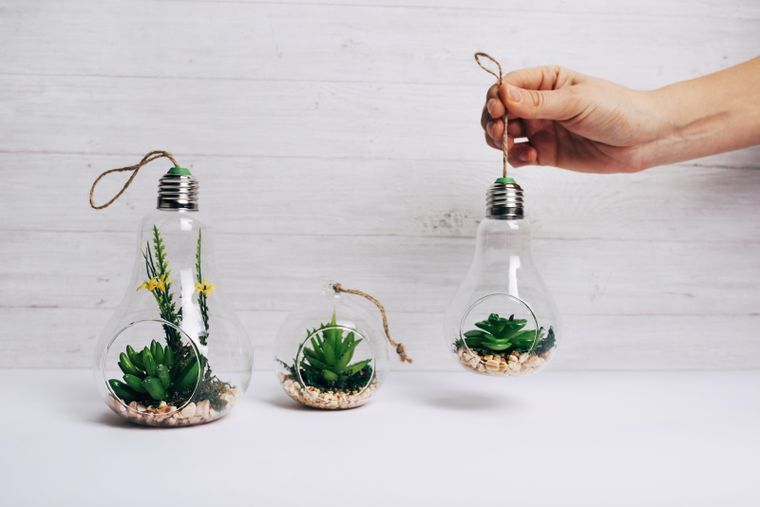 Primero se coloca una capa de piedras pequeñas que actúan como drenaje. Sobre ese nivel se hacen pequeños huecos para ubicar las plantas. Las suculentas son las estrellas del terrario por su resistencia y bajo consumo de agua.