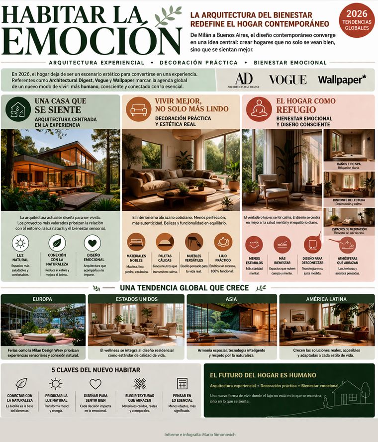 Publicaciones internacionales coinciden en que los proyectos más valorados hoy son aquellos que logran generar emociones positivas, calma y conexión con la naturaleza. El espacio deja de imponerse: ahora acompaña.
