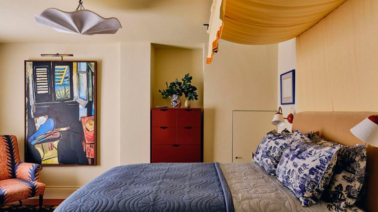 Según la teoría del rojo inesperado alcanza con agregar algo rojo que no combine con ningún otro mueble u objeto de una habitación para que el espacio cobre vida. Créditos: Mylands x Beata Heuman / No.21 Butter.