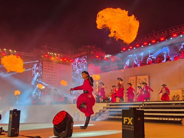 El espectáculo artístico, dirigido por Moisés Moral, comenzó a las 21:45 horas y se extendió durante una hora con 147 artistas en escena. La propuesta se alineó con el espíritu general de la Vendimia 2026, orientado a recuperar la historia del pueblo mendocino y, en este caso, lavallino. La trama se organizó en torno a los 90 años de la simbólica Finca “La Esperanza”, celebrando nueve décadas de trabajo y cosechas.