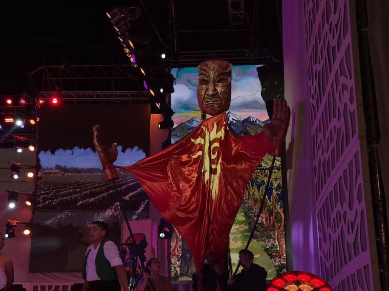 El guion recorrió la memoria local con énfasis en la identidad, el valor del trabajo, la fe, la familia y la comunidad, sin olvidar el agradecimiento por la cosecha. Uno de los momentos más significativos fue el homenaje a la herencia Huarpe, destacando su aporte fundamental como primeros hacedores de acequias para irrigar la tierra. Además de la vid, se puso en relieve la producción de melones y miel, íconos del perfil productivo del departamento.