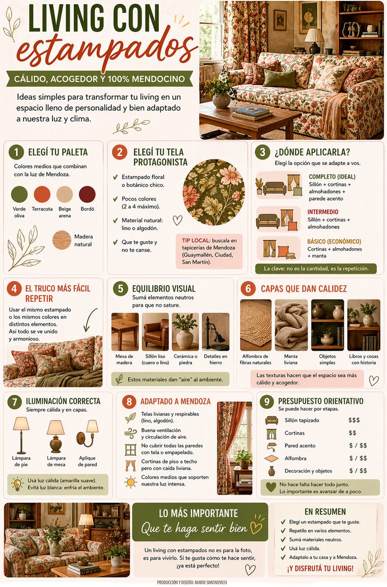 Cómo decorar tu living con estampados de forma simple, cálida y adaptada al clima de Mendoza, logrando un espacio luminoso, funcional y con estilo propio.