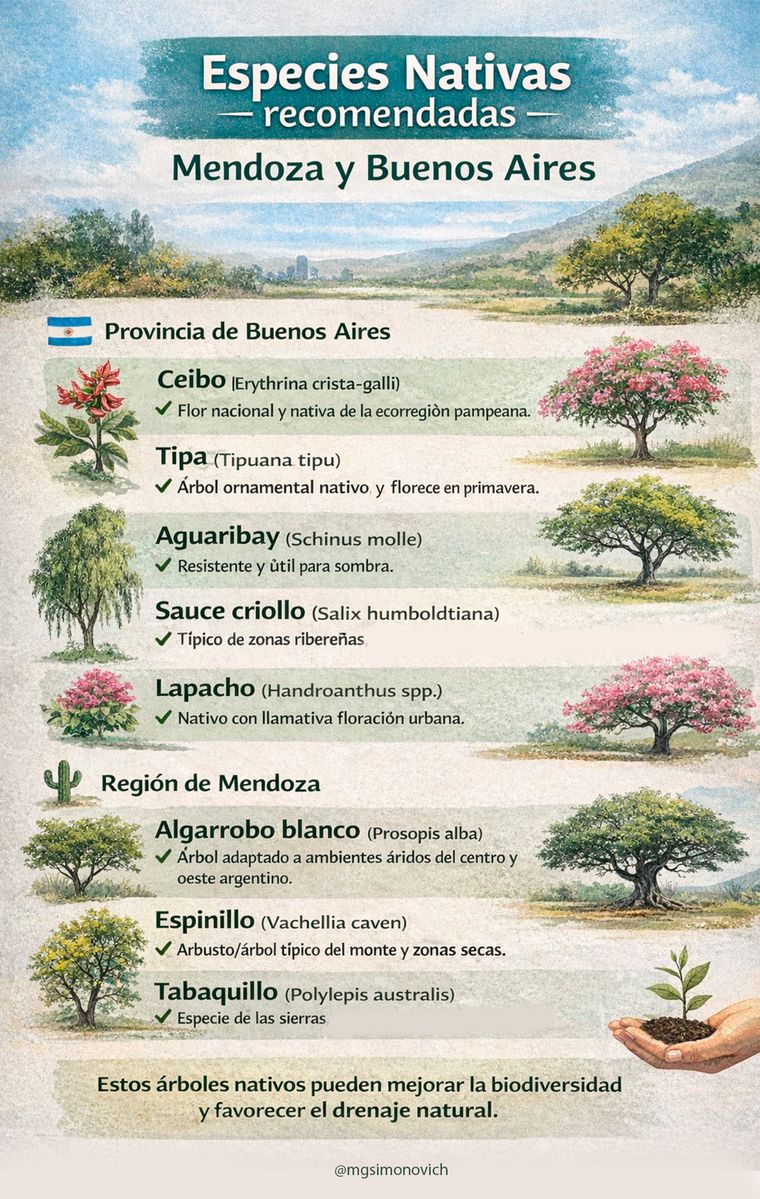 Árboles nativos recomendados para Mendoza y Buenos Aires que favorecen la absorción de agua, mejoran el drenaje del suelo y fortalecen la biodiversidad urbana frente a lluvias intensas y eventos climáticos extremos en Argentina.