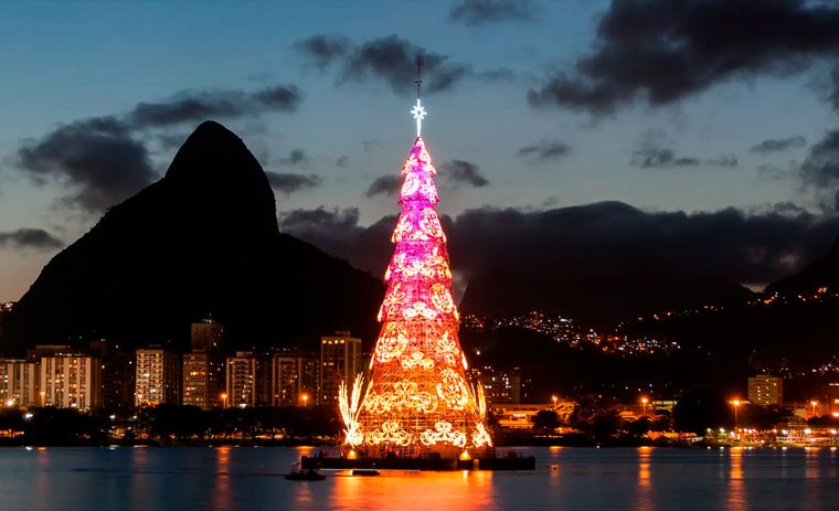 En 2005, el árbol de navidad flotante de Río de Janeiro (Brasil), instalado en la Laguna Rodrigo de Freitas, convirtió la temporada navideña de ese año en un evento histórico. Cubierto con 2.8 millones de luces de colores y sigue siendo uno de los árboles más impresionantes jamás vistos durante las fiestas. Con 82 metros de altura, montado sobre 11 plataformas flotantes y con un peso de 450 toneladas, demuestra que un árbol de Navidad no tiene que ser natural para ser extraordinario. Imagen: elespañol.com