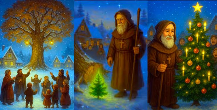También se atribuye como primer árbol de navidad un pequeño abeto verde que apareció tras la caída de un gran roble y que eso se tradujo en mensaje de esperanza, amor y bondad en la vida presente: