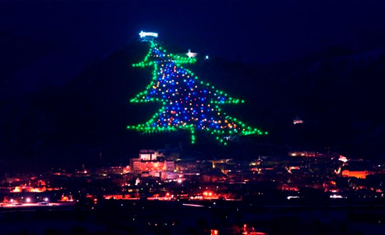 Árbol de navidad situado en la ladera del Monte Ingino (Gubbio, Italia), a 255 kilómetros de Roma. Se inauguró en 1981 y diez años después fue récord Ginness. Su altura es de 750 metros. Tiene 7.500 metros de cables conectados (con 1.350 enchufes y conectores). Iluminado con más de 3.000 lámparas, incluyendo 400 multicolores y 250 para la estrella. Cada año se destinan más de dos mil horas para poner en condiciones este árbol navideño comunitario. En 2014, el papa Francisco fue quien activó todas las luces, lo que significó un momento inolvidable para los asistentes.en Foto: millasxelmundo.com