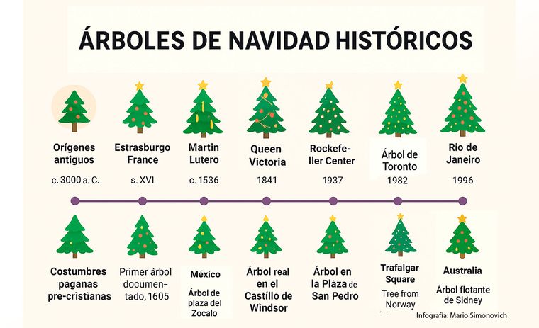 Si bien la navidad es una celebración cristiana, por un lado el árbol tiene orígenes miles de años antes del nacimiento de Jesucristo en Belén (el primer año de lo que se considera "DC") . En tanto, la idea de llevar un árbol decorado al interior de la casa durante celebraciones religiosas aparece con más claridad en Alemania y las regiones germánicas entre los siglos XVI–XVII. Créditos: Mario Simonovich.