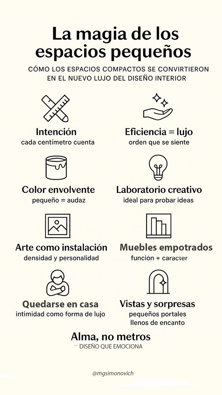 Al final, los metros cuadrados nunca han sido la vara que mide un buen diseño. Lo que importa es cómo nos hace sentir un espacio: si nos inspira, si nos abraza, si nos sorprende. Los ambientes pequeños nos enseñan justamente eso: que el diseño se trata de intención, creatividad y carácter.