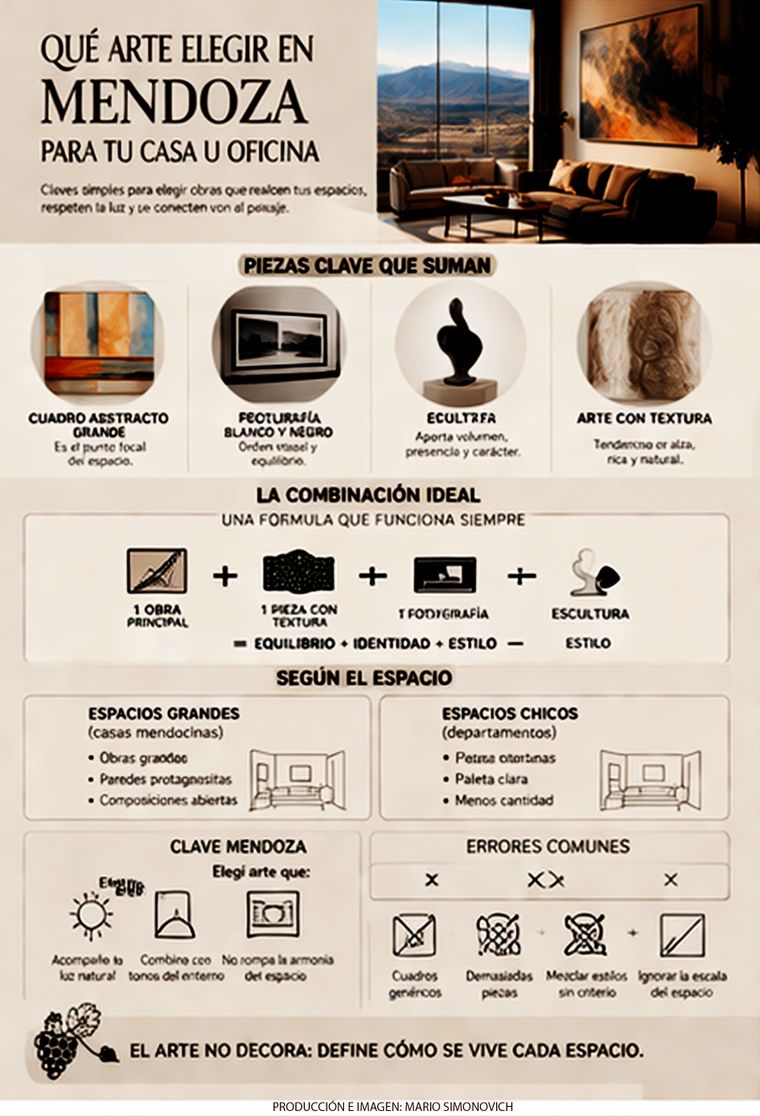 Claves para elegir obras de arte según el estilo de vida mendocino y lograr espacios equilibrados, modernos y funcionales.