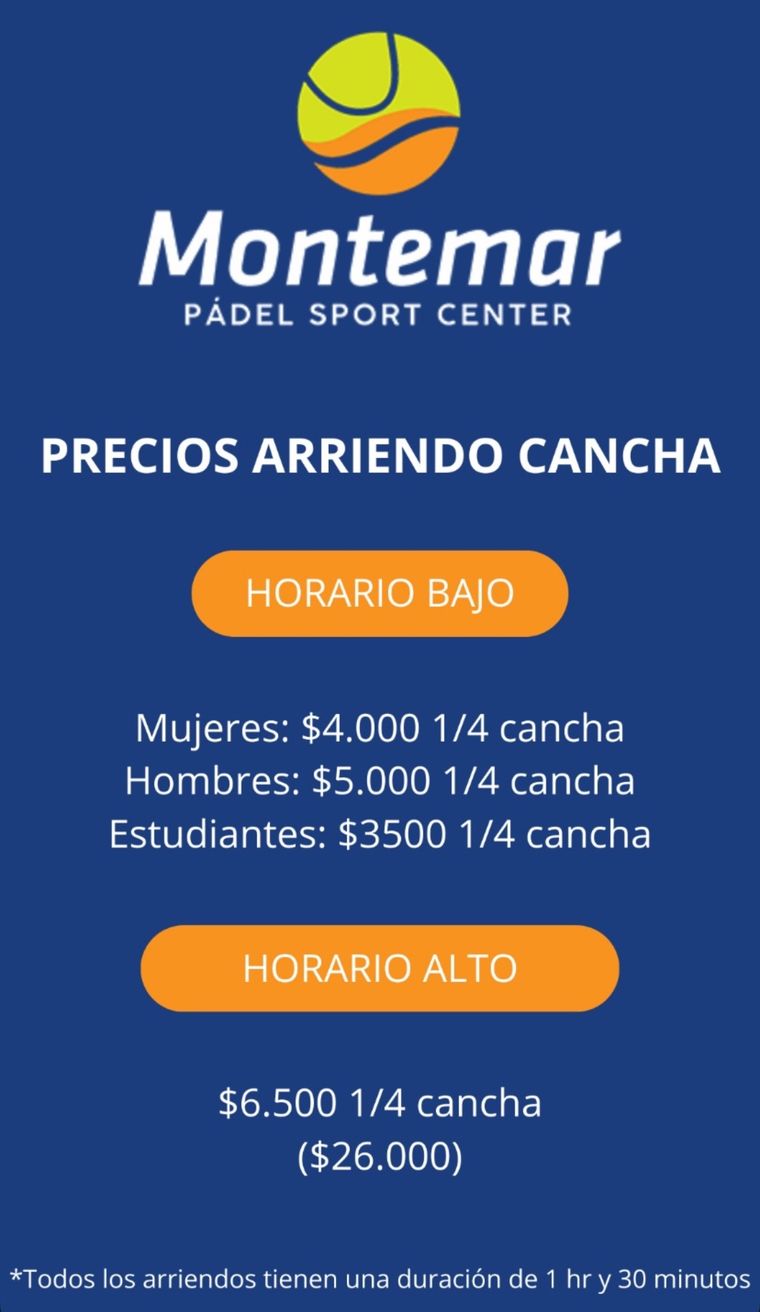 Para tomar como referencia, consultamos a una de las complejos más conocidos, llamado Montemar, que se ubica en ConCon, y estos son sus precios: