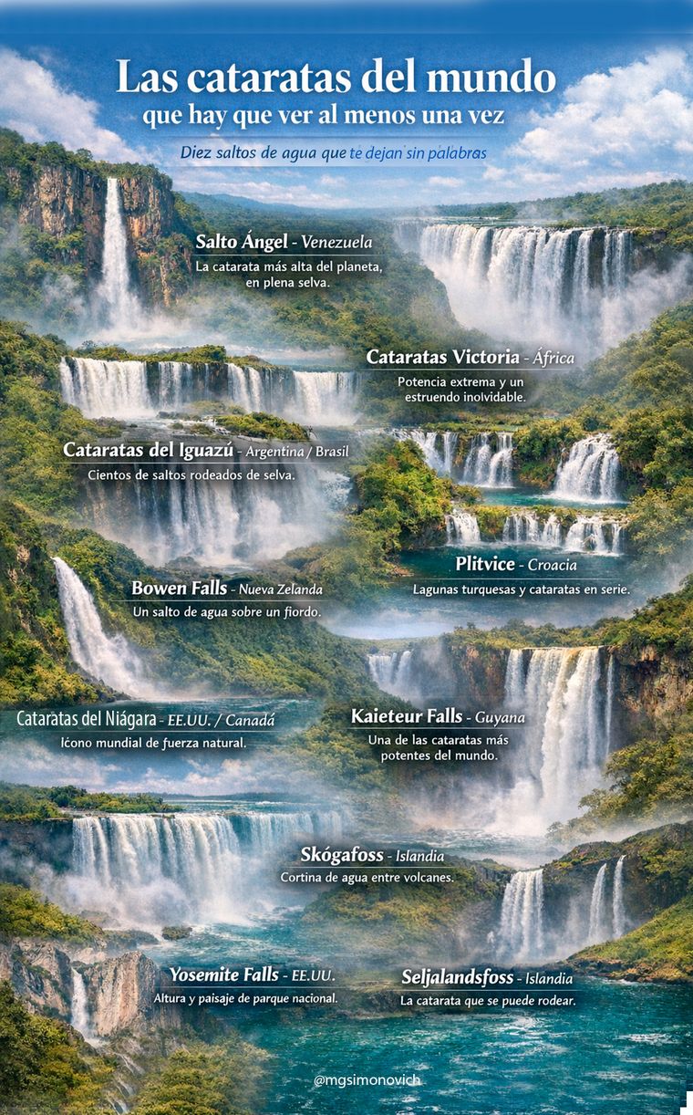 Más allá de su fama, estas cascadas invitan a detenerse y observar la magnitud de la naturaleza. Incluir al menos una en un viaje es apostar por una experiencia que combina aventura, contemplación y asombro, y que deja recuerdos imborrables.