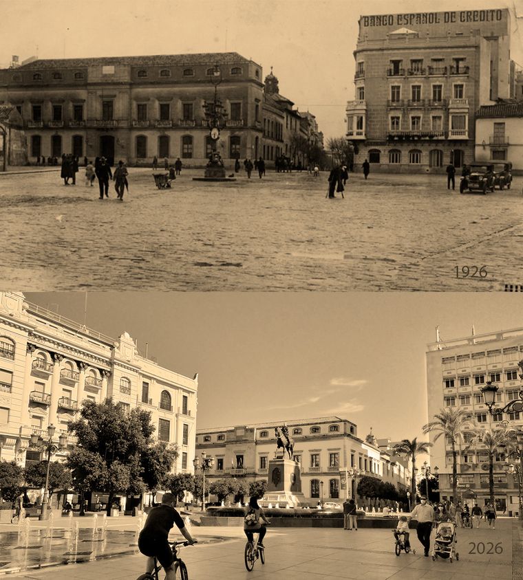Plaza de las Tendillas (Córdoba): 1926 vs 2025. Imágenes: cordobapedia.wikanda.es y sientecordoba.com