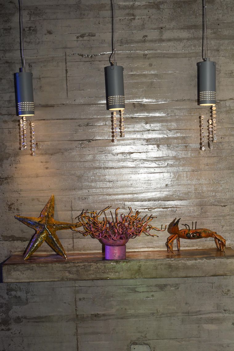 La muestra de Pata Luján Williams integra esculturas y un mural inspirados en el mar. Fue en un resort de lujo.