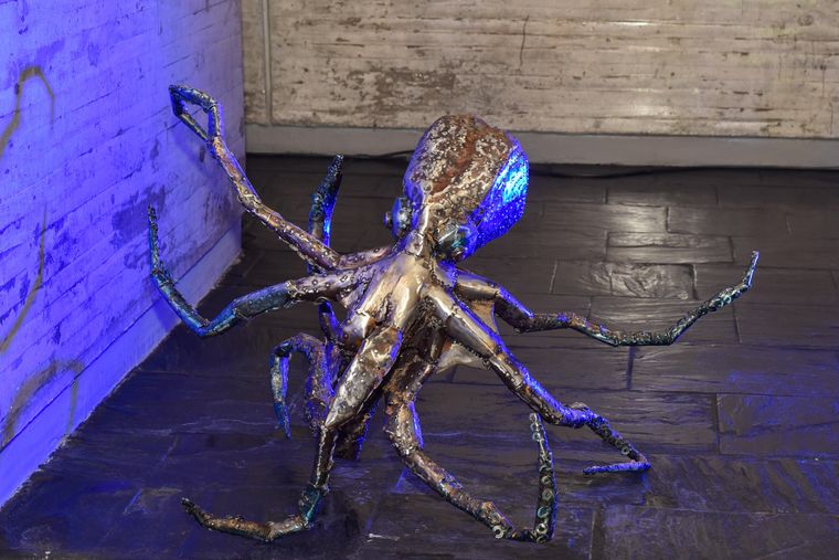 Además de las esculturas, la propuesta incorpora un trabajo artesanal en el área de ingreso, inspirado en motivos marinos. Si bien esta pieza forma parte de la intervención, su función principal es anticipar de manera simbólica la temática de la muestra, que dialoga con el elemento central del Hamam: el agua.