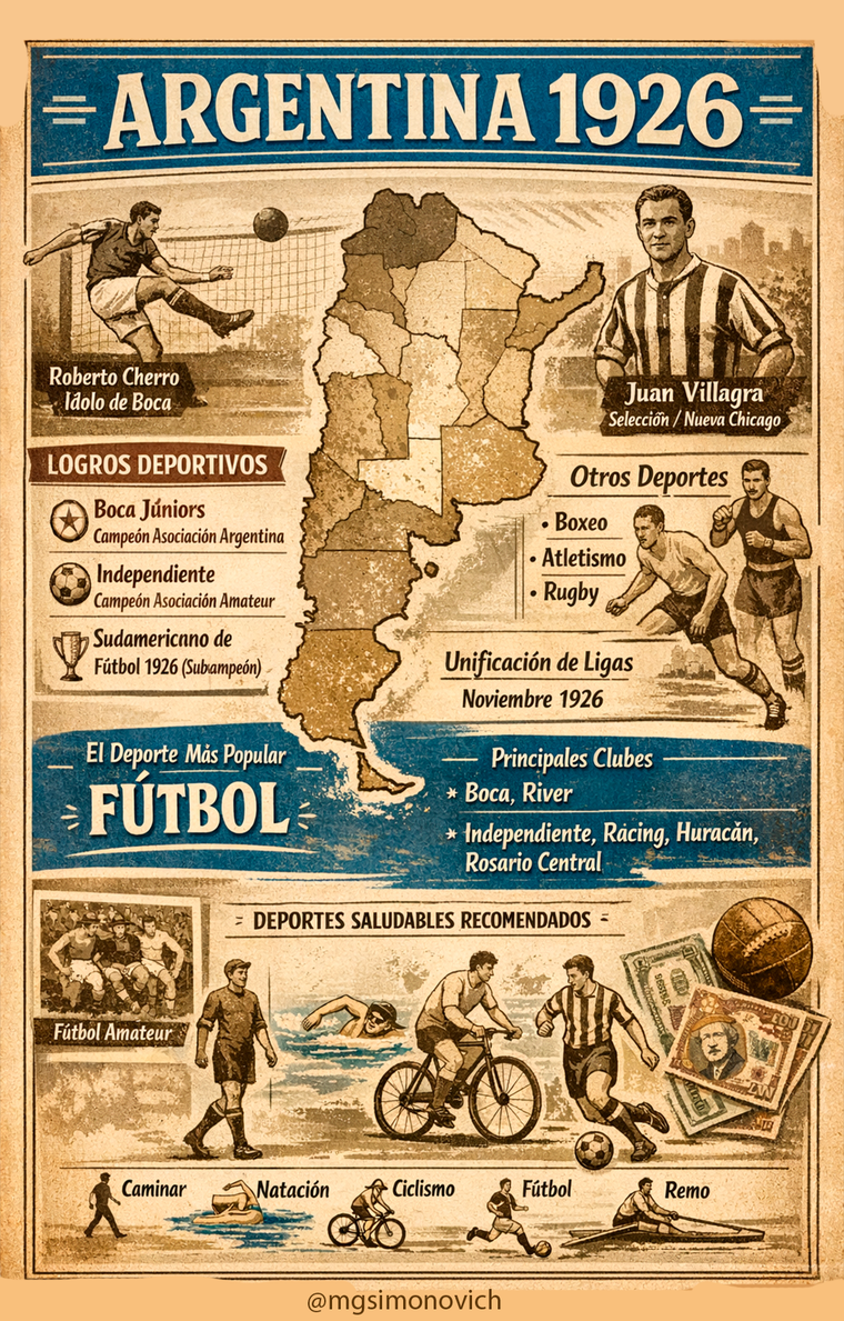 Nota histórica: En Argentina durante los años 1920 el deporte ya se apoyaba principalmente en fútbol, boxeo y automovilismo como actividades más populares e influyentes culturalmente.