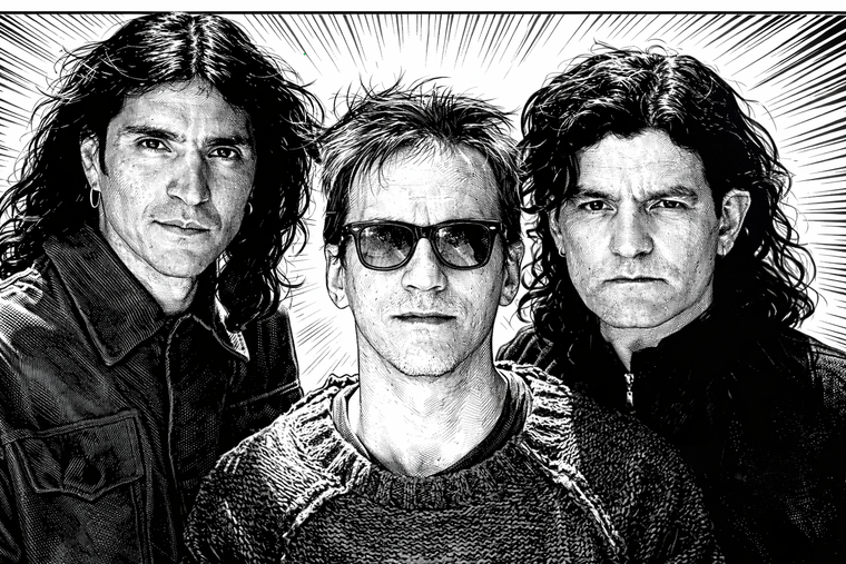 Foto de la formación inicial convertida en dibujo: Felipe Staiti, Marciano Cantero y Daniel Píccolo.