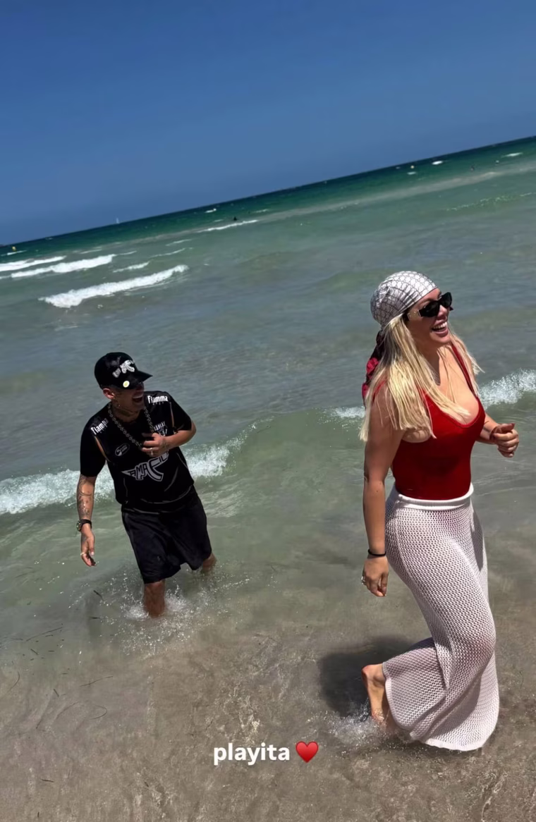 Para el beauty look, lució el cabello rubio platinado con ondas suaves, naturales. La foto se completó con L-Gante a su lado, en una escena que reavivó especulaciones pero también demostró que su vínculo sigue intacto, aunque sea desde la aparente amistad.