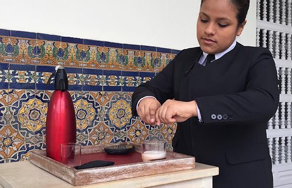 Algunos cocktails y platos son terminados en la mesa al momento de consumirlos.