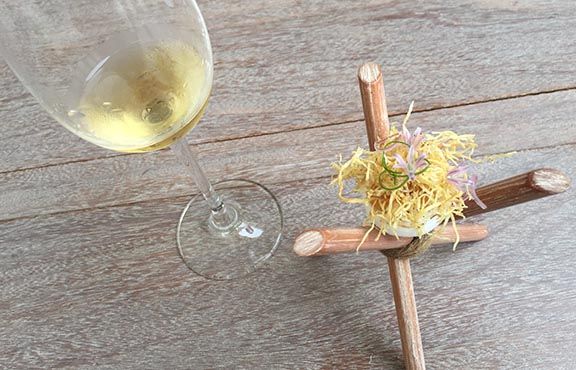 Cebolla helada y alcachofas con vino, con un jerez español.