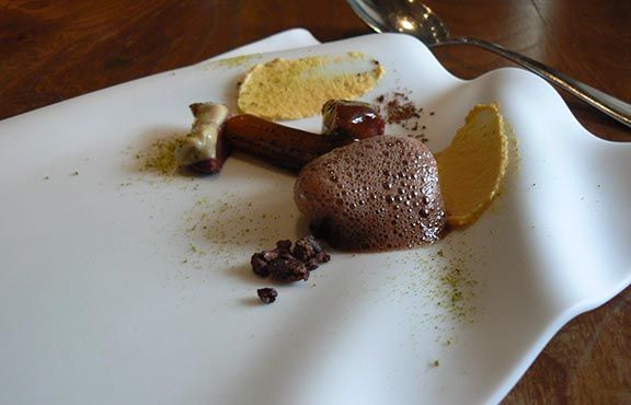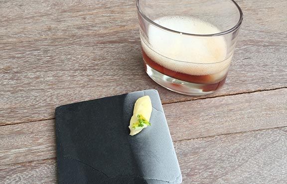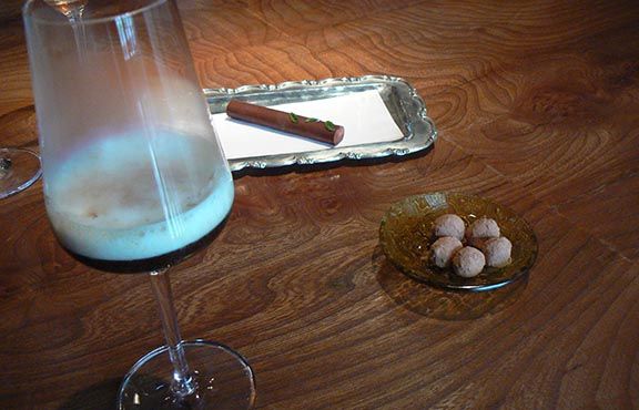 vermouth, toronja y chocolate blanco. Un "Capitán Negro" con un pequeño amouse buche.
