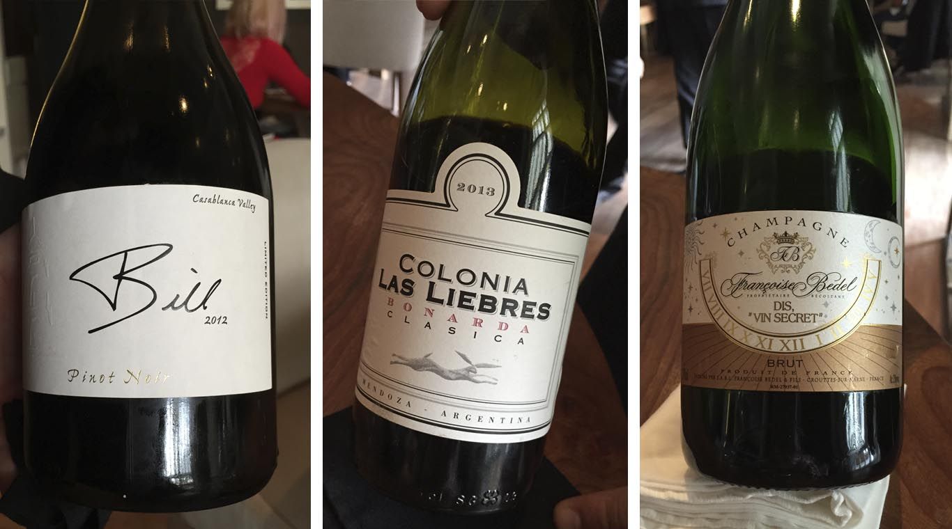 infusiones por ejemplo. El único vino argentino (mendocino), un bonarda de Colonia Las Liebres.