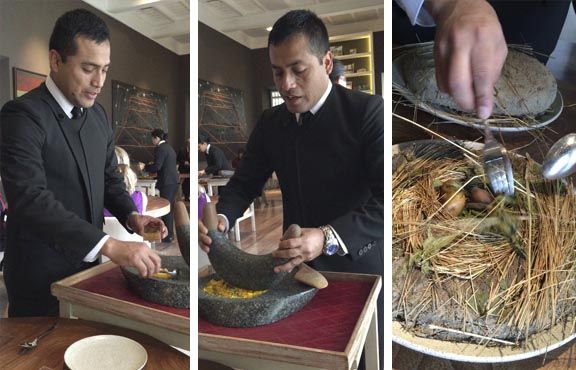 . Lo que más me gustó: la creatividad para elaborar los platos y para presentarlos, y el recorrido desde que llegué, hasta que me fui. El maridaje, un lujo. Es opcional pero vale la pena 100%, ya que el disfrute definitivamente se hace más intenso. Y la demostración de cómo se usa el batán (piedra de moler).