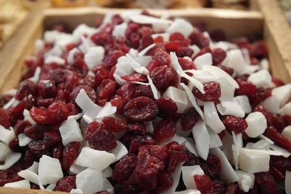 Se pude comprar casi todos los frutos secos, legumbres e incluso tés en hebras a granel. Al alcance de la mano del público se encuentran grandes bolsones con té azul o negro de Sri Lanka, chanca cusqueña o plomo, exquisitos arándanos deshidratados y mis favoritos cranberries rojos y pedacitos de coco.