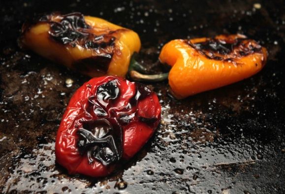 Tip: Luego de grillar los pimientos verdes, rojos o amarillos colocarlos en papel film para que la propia humedad generada por el vapor atrapado le quite la piel.