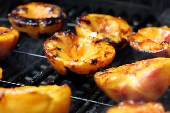 En el caso de los duraznos pelones se sugiere partir en mitades, retirar el carozo, pincelar con aceite de oliva virgen extra (el óptimo sería un frantoio o una manzanilla, en mi opinión) y llevar al grill previamente calentado. Opcional espolvorearlo con azúcar blanca con menta picada.