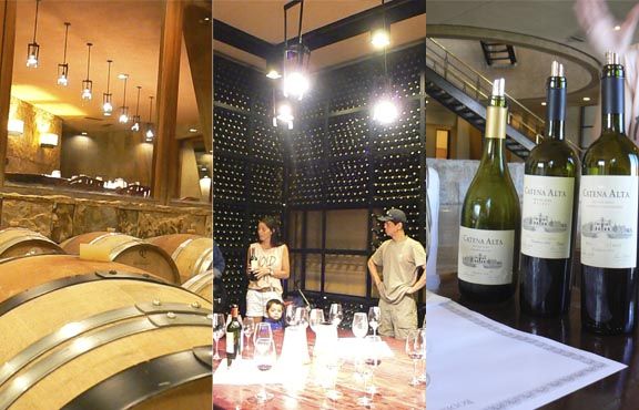 Imponente: Catena Zapata impacta con su infraestructura. Recorrimos la sala de barricas, una terraza con una vista formidable, y probamos 4 ricos vinos en un elegante living con un prolijo y cuidado servicio. Además vimos un video sobre la historia de la bodega. Degustación $200