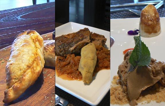 Nosotros optamos por el menú más económico, el cual incluyó 2 empanadas, un plato de carne braseada con verduras, y de postre bananas caramelizadas con helado de dulce de leche, ganache de chocolate y naranja. Rico, simple, bien nuestro y súper abundante. Acompañamos con un malbec de la línea 505 de Casarena, y una copa de espumante en el postre.
