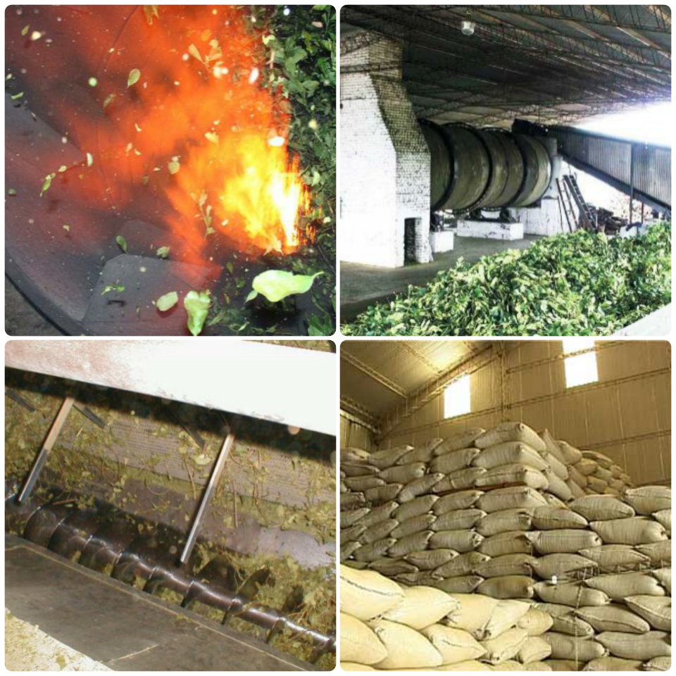 Secado: se procede al secado de las hojas con temperaturas que llegan a 100° C, se puede hacer usando electricidad o madera no resinosa.