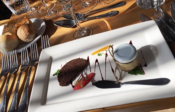 Paso 1: Pumpernickel (pan especial hecho con centeno)con paté y ciruelas, con Zuccardi seria A malbec Rosé. Paté, muy bien diez, textura, intensidad de sabor... todo, genial.